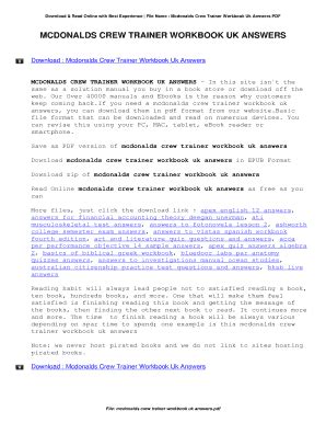 Download Answers To Mcdonalds Crew Trainer Workbook PDF online is a convenient and frugal way to read Answers To Mcdonalds Crew Trainer Workbook you love right from the comfort of your own home. Yes, there sites where you can get PDF "for free" but the ones listed below are clean from viruses and completely legal to use.
